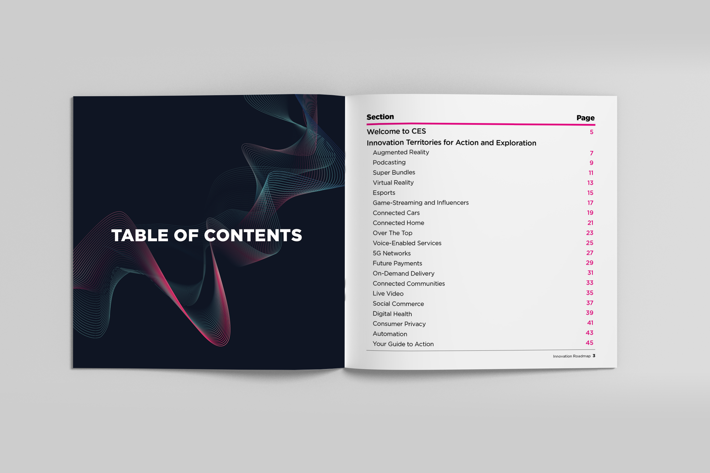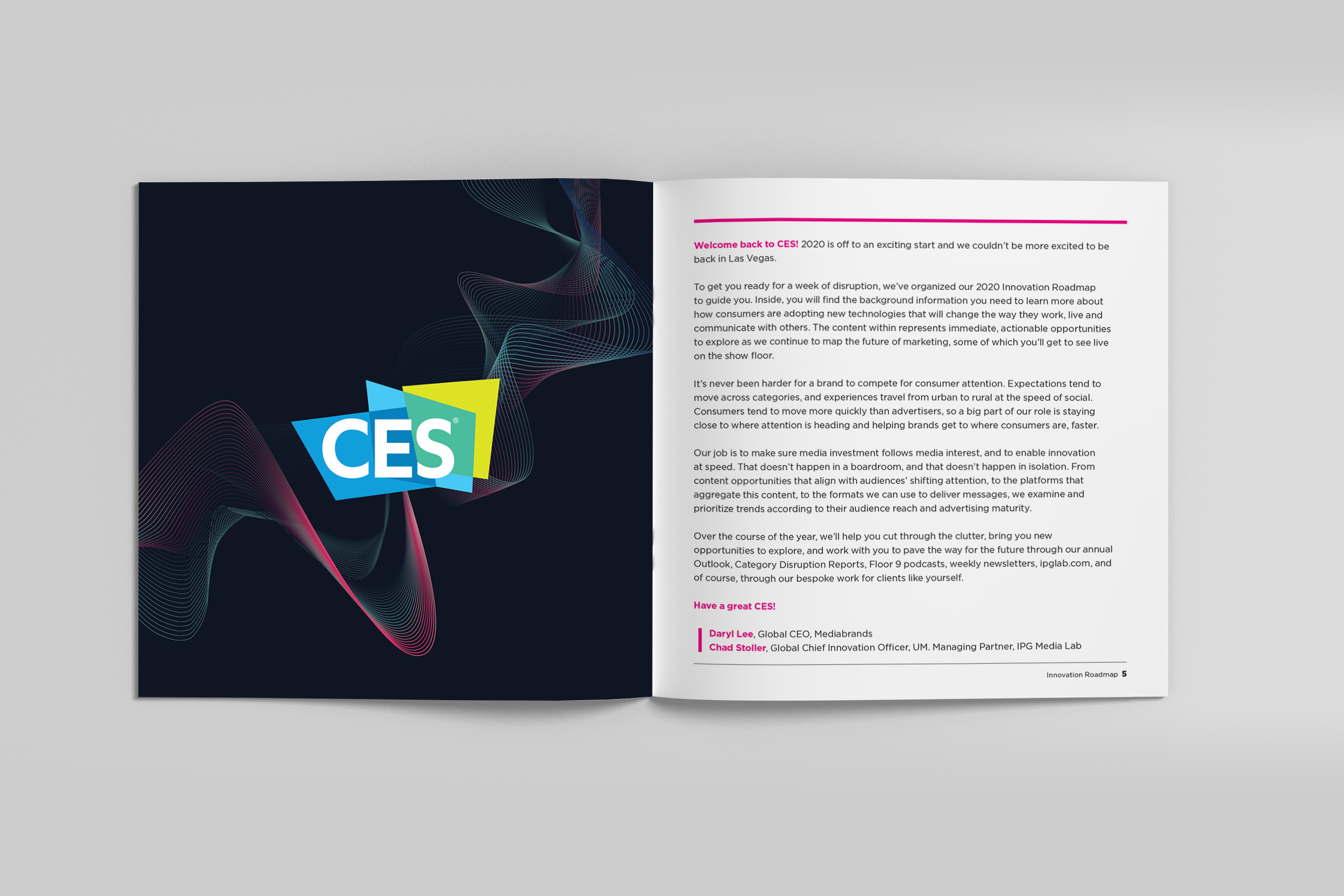 Branded and designed materials for IPG MEDIA LAB’S CES 2020 ”The Disruption Economy”.